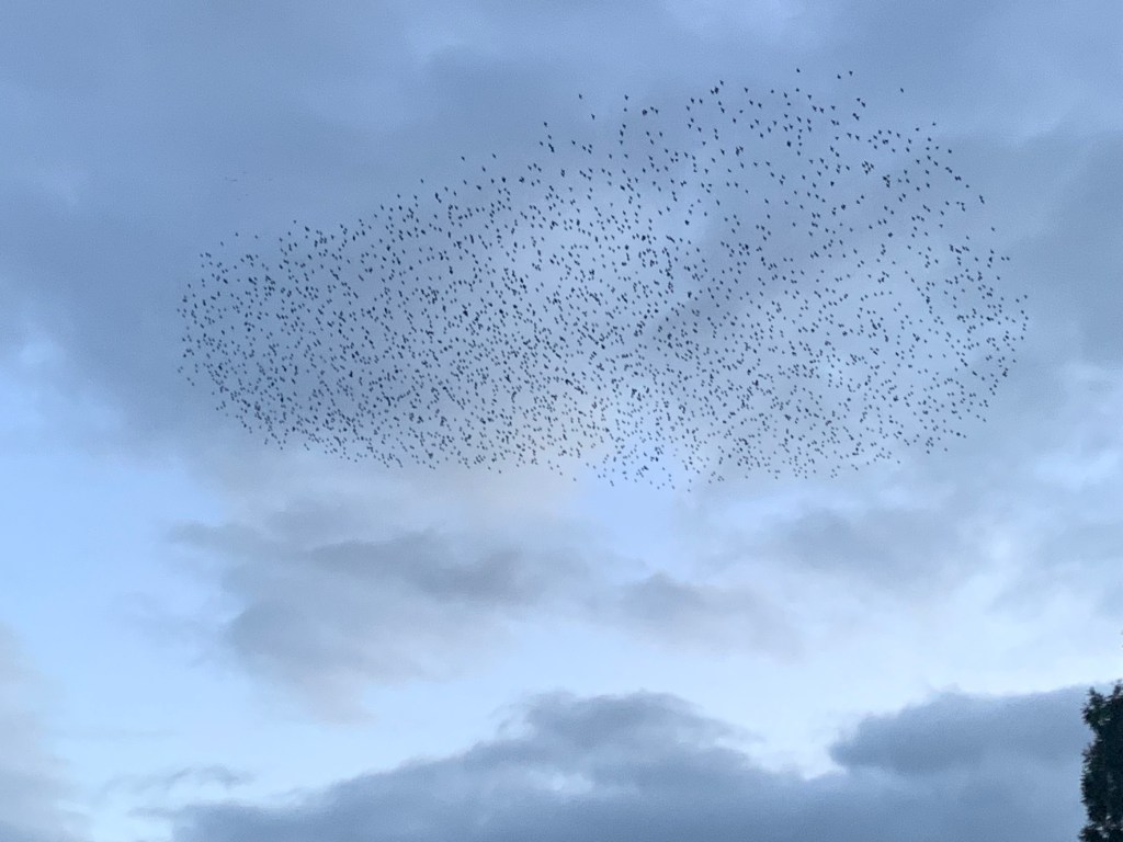 This was a murmuration, the term for starlings gathering in such a manner. I have seen murmurations before – off the Suffolk coast near Minsmere and over the West Pier in Brighton where I used to live – but this was a first for me in our neighbourhood.