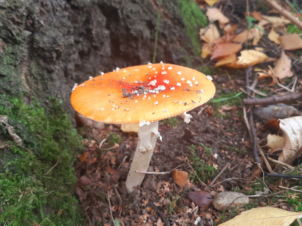 I had read before setting off that fly agarics can be found most often near birch trees or pines and spruces between late summer and early winter.