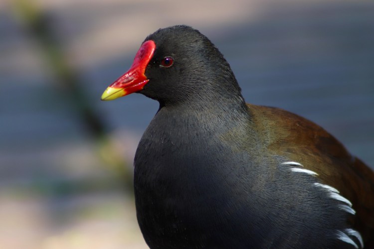 Very few things happen by accident in nature – every adaption has a use; evolutionary amendments have come about for a reason. Scientists say the dazzling colours of the moorhen’s beak are indicators for other moorhens to tell how healthy an individual is. Studies have shown that the red part of the bill is related to low levels of bacterial infection, while the yellow section is a mark of blood health, such as resistance to infection.