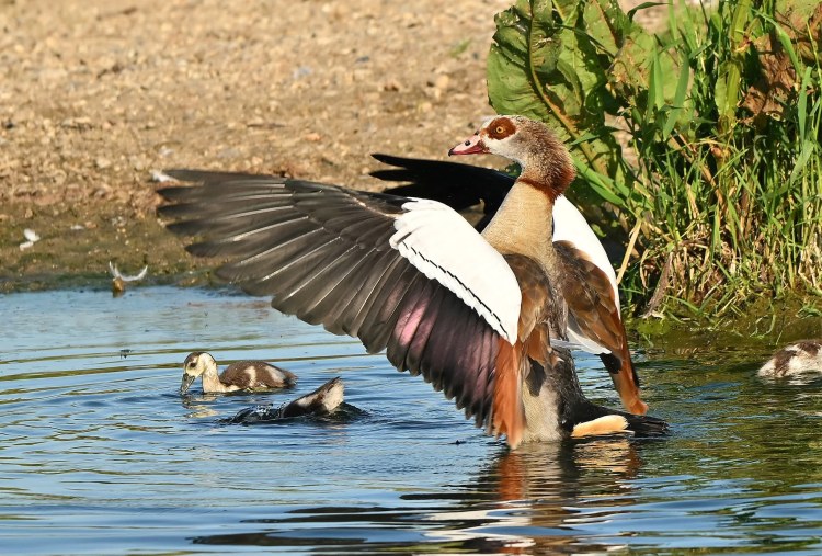 Their popularity as ornamental birds saw the Egyptian goose also introduced to other regions including mainland Europe and the United States where they have spread too, and, I am told, those who watch a lot of sport on television can see them wandering around golf courses during tournaments.